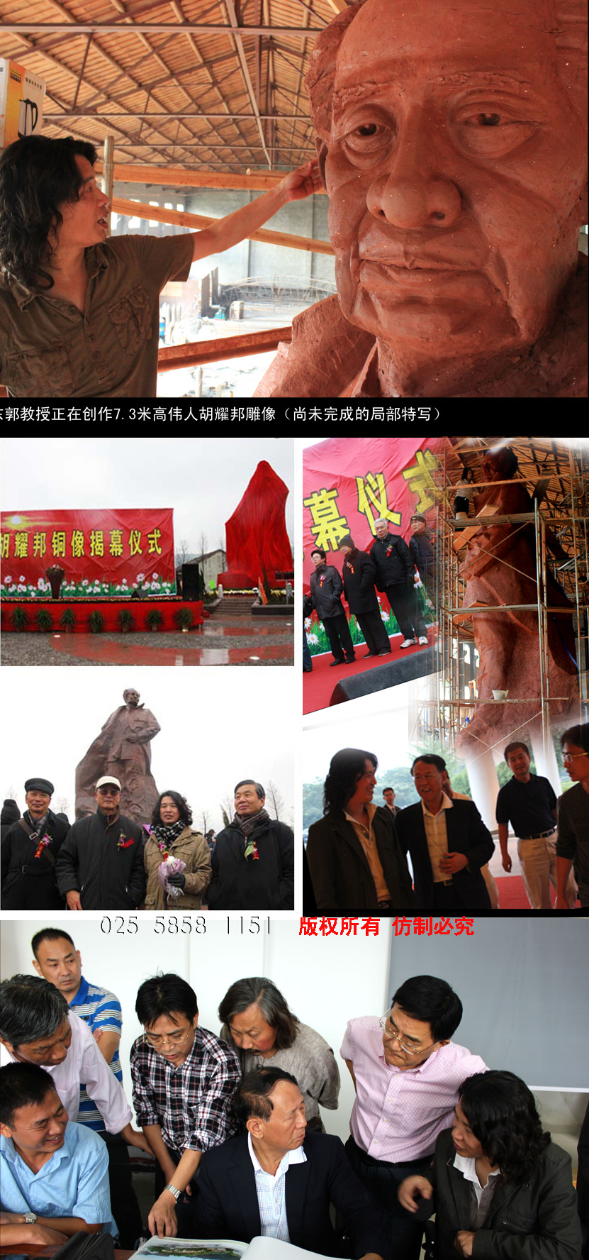 原中共中央統(tǒng)戰(zhàn)部副部長、全國工商聯(lián)黨組書記胡德平和江蘇文化界人士集體合影東郭教授正在創(chuàng)作七米三高偉人胡耀邦雕像(尚未完成的局部特寫)